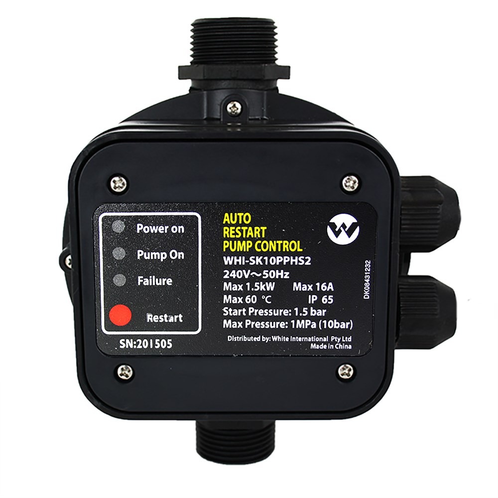 The White International controller monitors both the pressure and the flow. These devices are used to control electric 240V pumps of 1.5kW or less. It automatically controls the operation of the pump, and because of its design, there is no need for a separate pressure (expansion) tank, nor is there any need to adjust start and stop pressures as per traditional pressure switches.